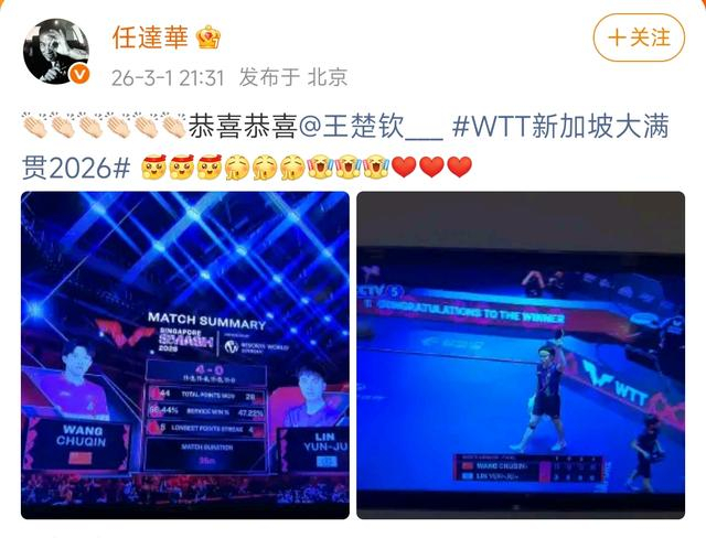 除此之外,中国香港知名演员任达华,在赛后第一时间通过微博发出了“恭喜恭喜”的简单祝福,却迅速引爆了热搜。
