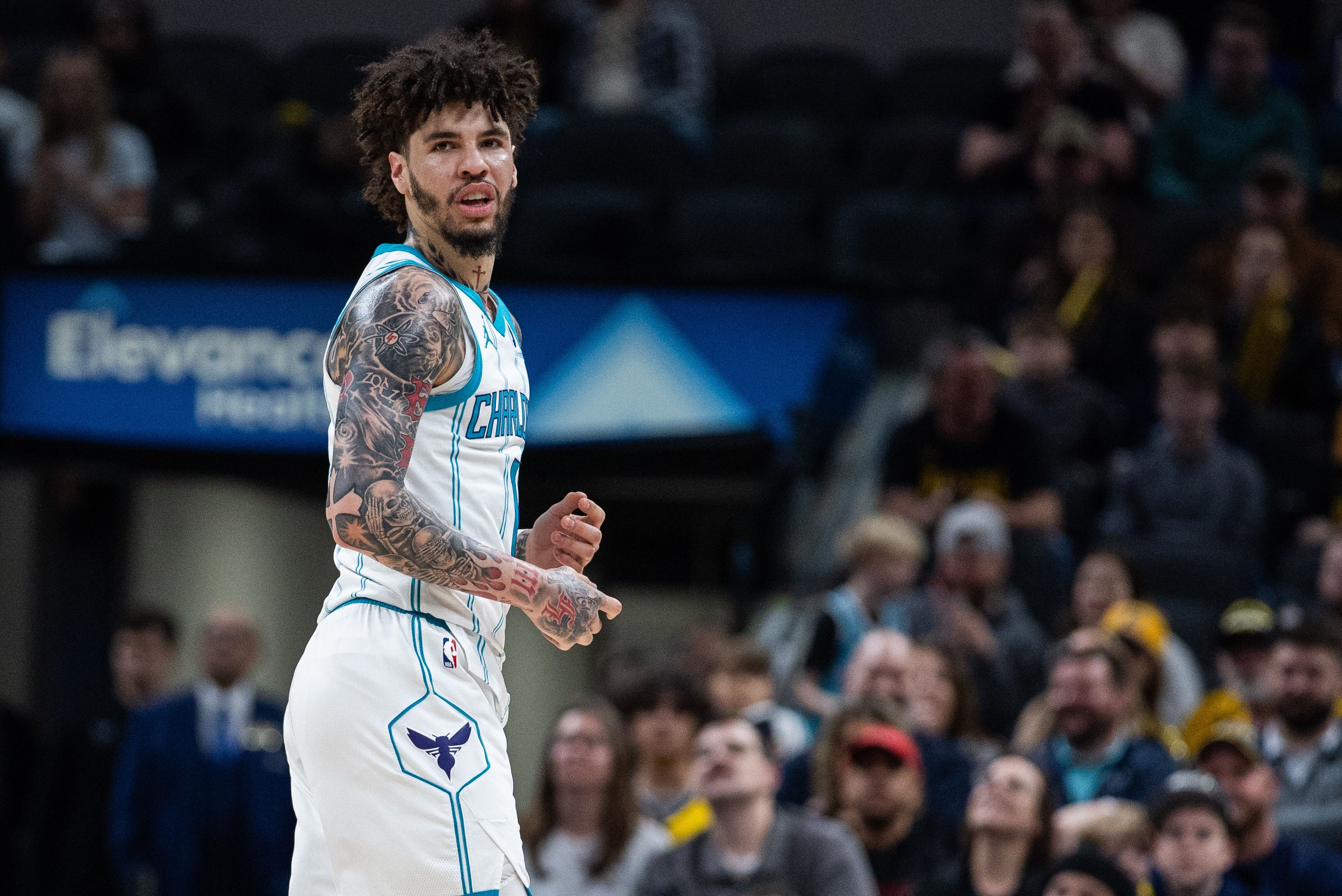 4月1日讯 NBA常规赛,黄蜂117-86大胜篮网。本场比赛,三球进攻端外线手感一般,他出战28分钟,12中4,三分10中3,罚球4中3拿到14分7篮板9助攻,出现3失误,正负值+24。...