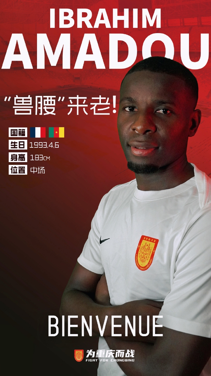 欢迎阿马杜加入重庆铜梁龙大家庭!期待他能快速融入球队,适应球队战术体系,充分发挥自身优势,以成熟的表现回报俱乐部与广大球迷的信任与期待,与球队全体将士并肩作战、同心致远,一起为重庆而战!同时,也祝愿阿马杜在重庆开启的职业生涯新篇章,一切顺利、再创佳绩!